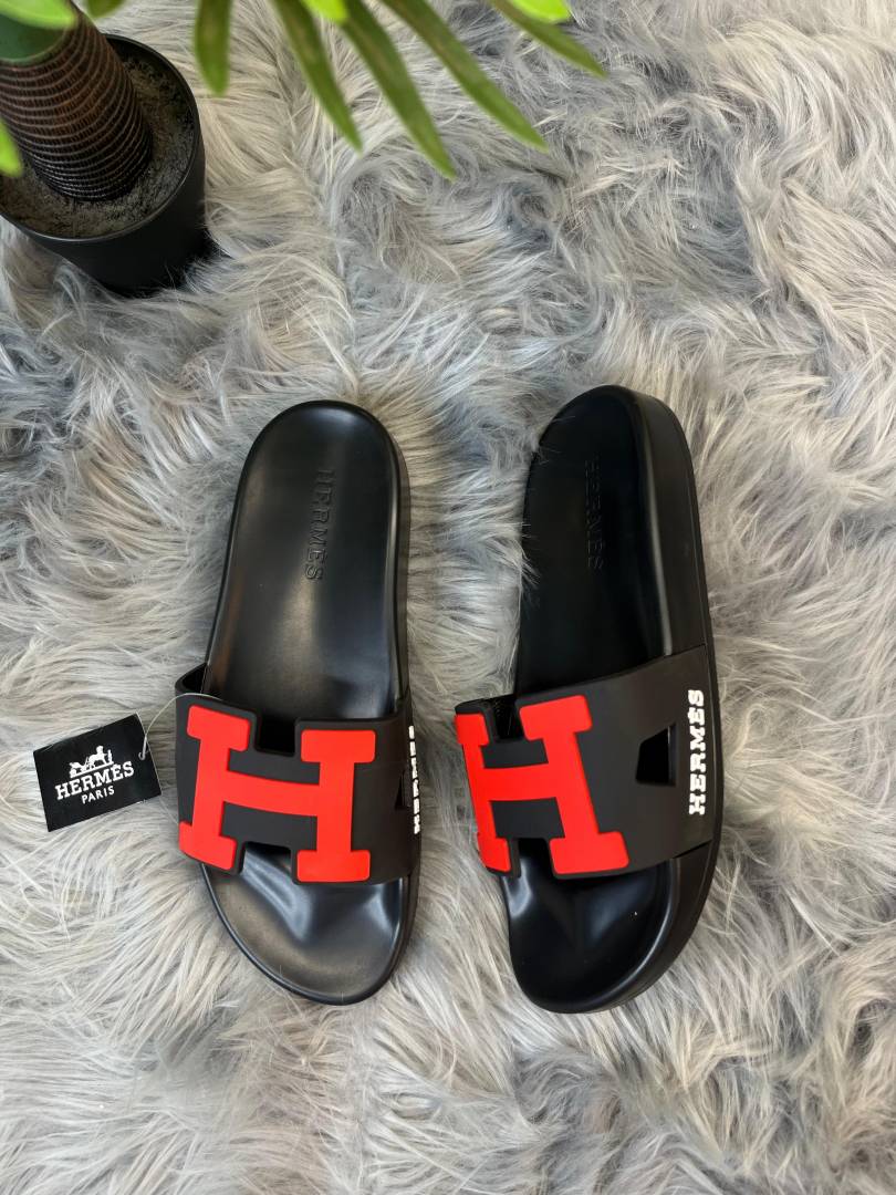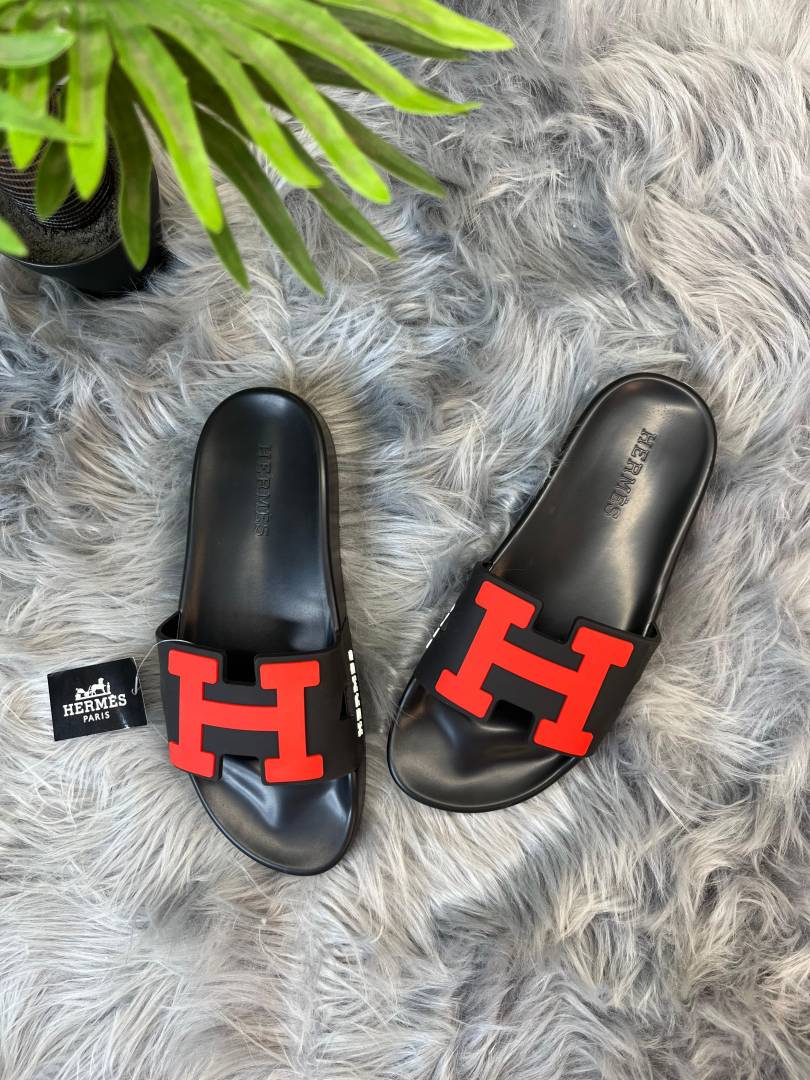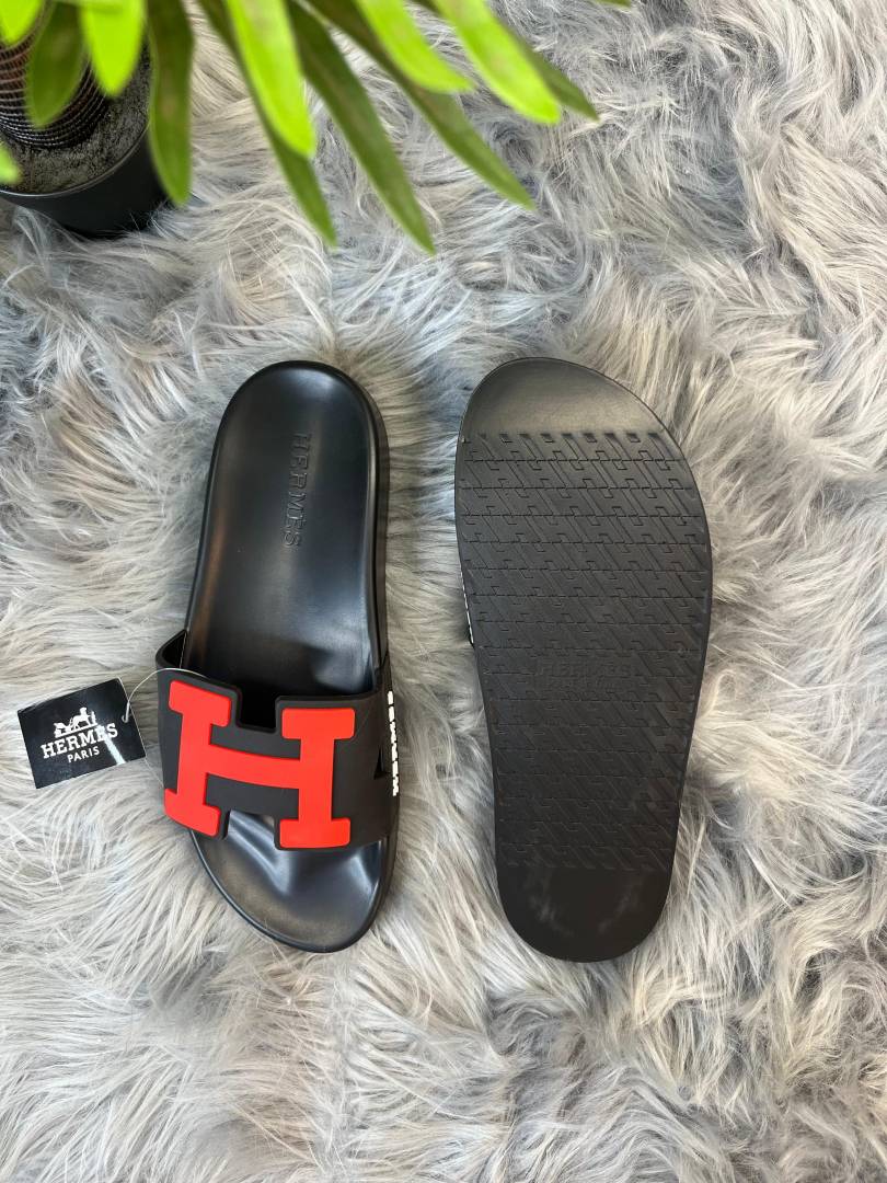 HERMES PARIS H LOGO SLIDE black RED