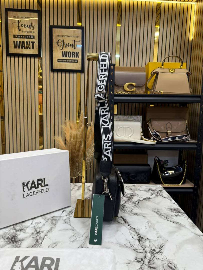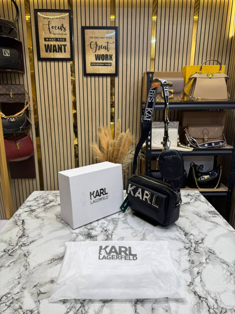 • Karl Lagerfeld Maybelle Paris Camera Crossbody Bag With Pouch Premium Quality (White)